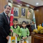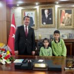 Belediye Başkanımız Adnan Vurucu, 23 Nisan Ulusal Egemenlik ve Çocuk Bayramı Haftasında, Sebati Gönenç İlköğretim Okulu 4. Sınıf Öğrencisi Semanur Çiftçi ve Levent Kurtuluş’u Makamımda Ağırladı.