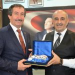 Başkan Fırat, Belediye Başkanı Adnan Vurucu’yu kapıda karşılayarak ziyaretinden dolayı teşekkürlerini iletti.