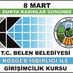 Belen Belediyesi ve KOSGEB’in işbirliğinde düzenlenen ve yaş sınırı olmayan KOSGEB Girişimcilik Kursu’nun, 8 Mart Dünya Kadınlar Günü’nde Belen’de başlayacağını belirten, Belediye Başkanı Adnan Vurucu; Dünya Kadınlar Gününde en anlamlı hediyeyi hanımlara sunuyoruz dedi.