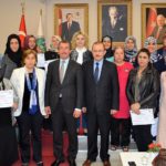 Konuşmaların ardından Belen Belediye Başkanı Adnan Vurucu, Hatay KOSGEB İl Müdürü Kenan Sert, girişimcilik kursunu başarıyla tamamlayan kadınlara, sertifikalarını sundu.