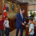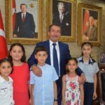 Belediye Başkanımız Adnan Vurucu, Ramazan Bayramı Dolayısıyla Makamında Ziyaretçilerini Kabul Ederek Bayramlaştı. Ramazan ayını idrak etmenin mutluluğunu yaşadığını ifade eden Belen Belediye Başkanı Adnan Vurucu; “Ramazan ayının rahmet ve bereketini bir kez daha yaşıyoruz. Rabbim her sene bu güzel günü, bizlere ve ülkemize yaşatır. İfadelerini kullanarak, gelen misafirlerle bayramlaştı. Çocuk misafirlerini de unutmayan Belediye Başkanımız Adnan Vurucu, Bayramlaşmaya gelen çocuklara bayram harçlığı verdi.