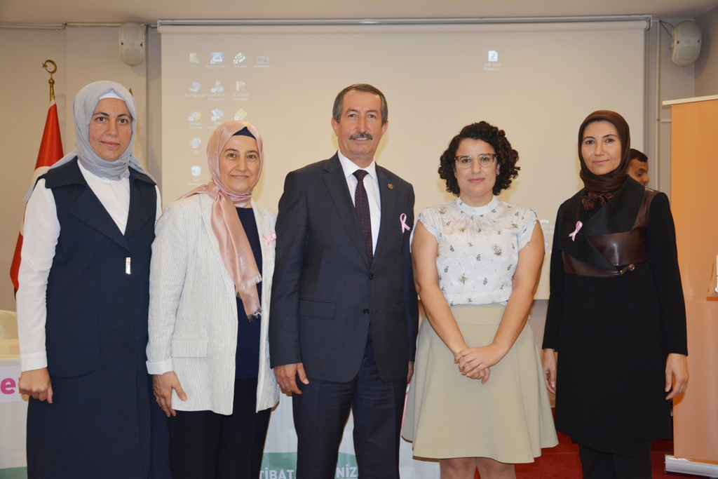 “Kıymetli Misafirlerimiz, Meme Kanseri bilinçlendirme ve farkındalık ayı münasebetiyle Kadın ve Demokrasi Derneği ( KADEM) ile ortaklaşa düzenlediğimiz seminerimize hepiniz hoş geldiniz.