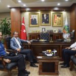 Yine Hatay İl Emniyet Müdürü Kamil KARABÖRK ve Belen İlçe Emniyet Amiri Mehmet KARCI’da Başkan VURUCU’nun makamında yaptıkları ziyarette, Belen’de yaşanantrafik sorunları ve güvenlik açısından tehdit oluşturabilecek durumlar hakkında istişarelerde bulundular. Belen Geçidi dolayısıyla, yoğun bir trafik akışına sahip olan Belen’in, yapılan yeni trafik ışıkları ve üst geçitlerle rahatlayan araç yolları üzerine memnuiyetini dile getiren Başkan VURUCU, Hatay İl Emniyet Müdürü Kamil KARABÖRK ve Belen İlçe Emniyet Amiri Mehmet KARCI’ya ziyaretlerinden dolayı teşekkürlerini iletti.