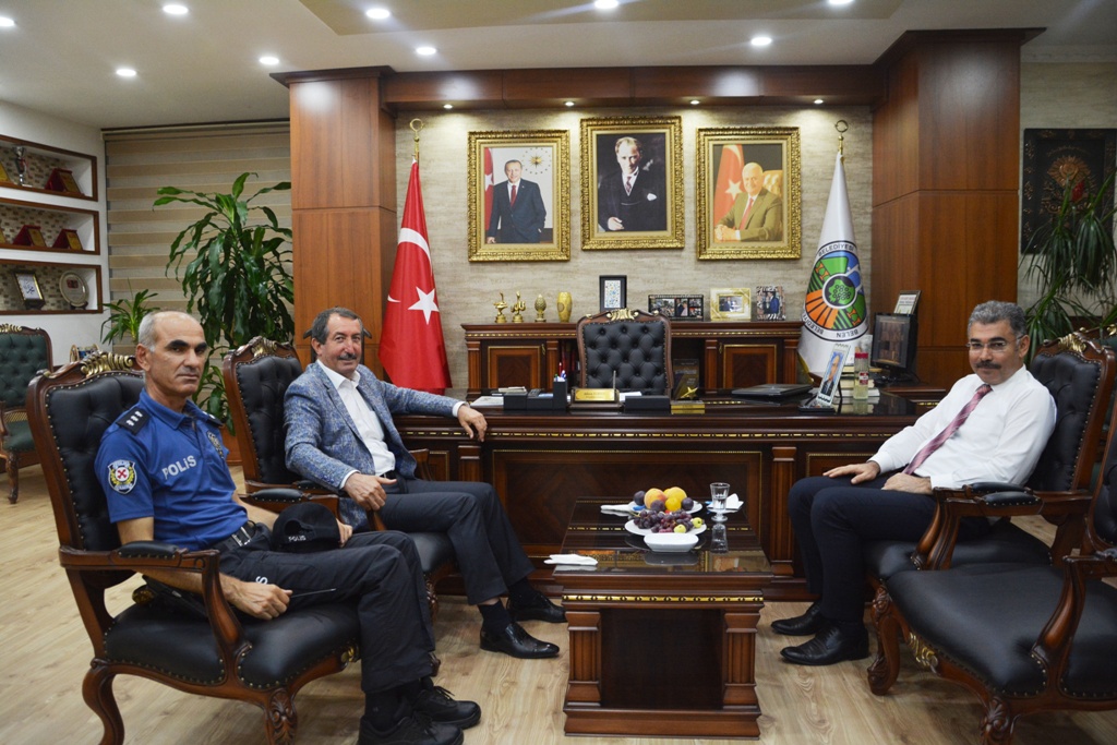 Yine Hatay İl Emniyet Müdürü Kamil KARABÖRK ve Belen İlçe Emniyet Amiri Mehmet KARCI’da Başkan VURUCU’nun makamında yaptıkları ziyarette, Belen’de yaşanantrafik  sorunları ve güvenlik açısından tehdit oluşturabilecek durumlar hakkında istişarelerde bulundular. Belen Geçidi dolayısıyla, yoğun bir trafik akışına sahip olan Belen’in, yapılan yeni trafik ışıkları ve üst geçitlerle rahatlayan araç yolları üzerine memnuiyetini dile getiren Başkan VURUCU, Hatay İl Emniyet Müdürü Kamil KARABÖRK ve Belen İlçe Emniyet Amiri Mehmet KARCI’ya ziyaretlerinden dolayı teşekkürlerini iletti.