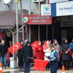 İdlip Şehidi Piyade Uzman Çavuş Serkan Deprem’in naaşının ilçelerinden geçeceğinin duyumunu alan Belen Belediyesi çalışanları, anayol üzerinde Türk Bayraklarıyla bekleyerek, Şehidin geçişini üzüntüyle karşıladı.