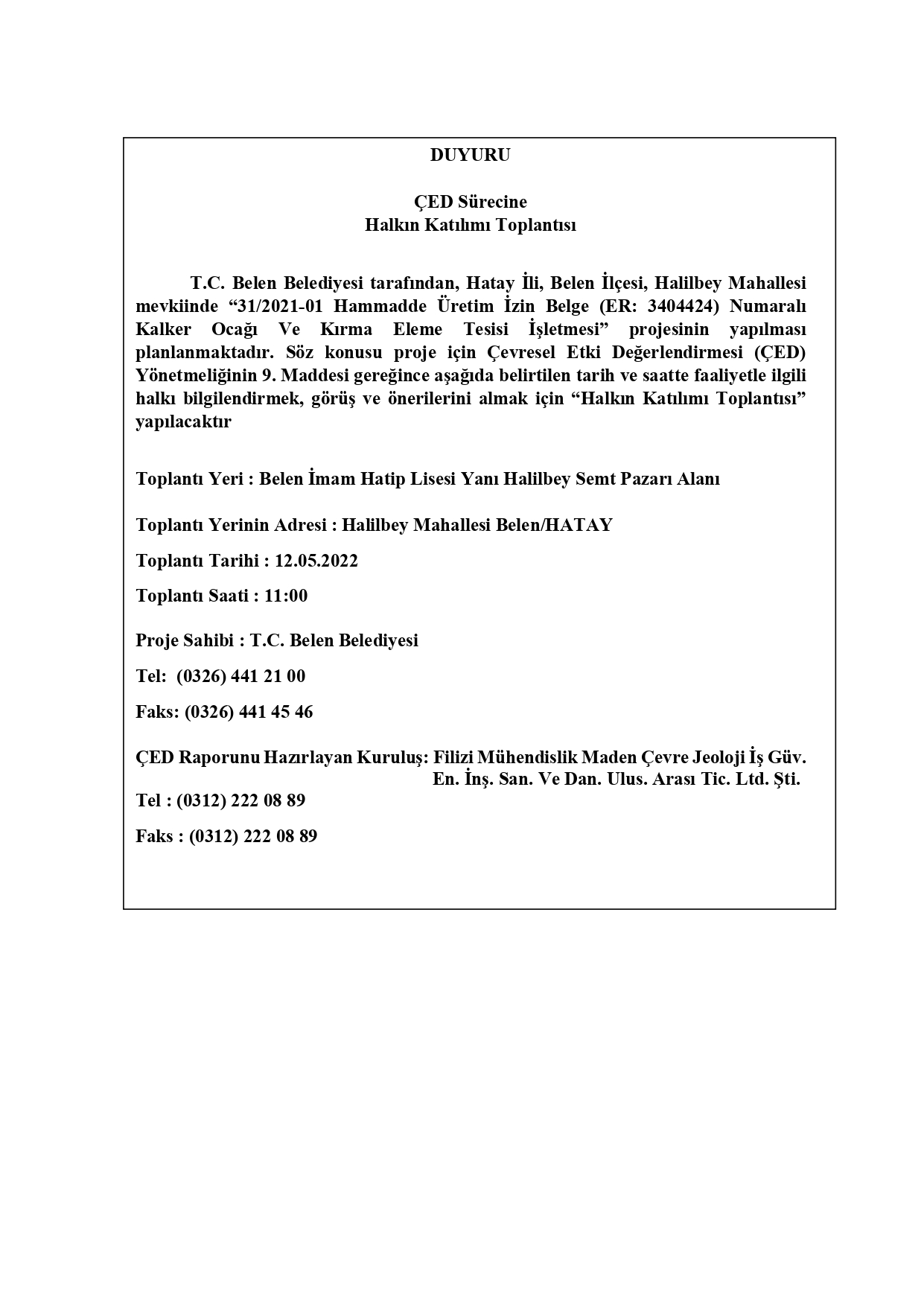 ÇED Sürecine Halkın Katılımı Toplantı Duyurusubelenbasin2022-05-17T07:53:17+03:0029 Nisan 2022|PaylaşFacebookTwitterRedditLinkedInWhatsAppPinterestVkE-posta İlişkili YazılarÇED Olumlu Kararı İlan Yazısı (Mehmet ÖZKAN) Hakkında ÇED Olumlu Kararı İlan Yazısı (Mehmet ÖZKAN) Hakkında Kadastro Güncelleme Alanı İlanı Kadastro Güncelleme Alanı İlanı Ocak ayı olağan meclis toplantı İlanı Ocak ayı olağan meclis toplantı İlanı ÇED Olumlu Kararının Duyurulması Hk. ÇED Olumlu Kararının Duyurulması Hk. Çed Kararı İlan Yazısı (Beltaş Madencilik) Duyurusu Çed Kararı İlan Yazısı (Beltaş Madencilik) Duyurusu ÇED Gerekli Değildir Kararı İlan Yazısı Hakkında Duyuru ÇED Gerekli Değildir Kararı İlan Yazısı Hakkında Duyuru Siz de fikrinizi belirtin Cevabı iptal etComment Save my name, email, and website in this browser for the next time I comment. Δ