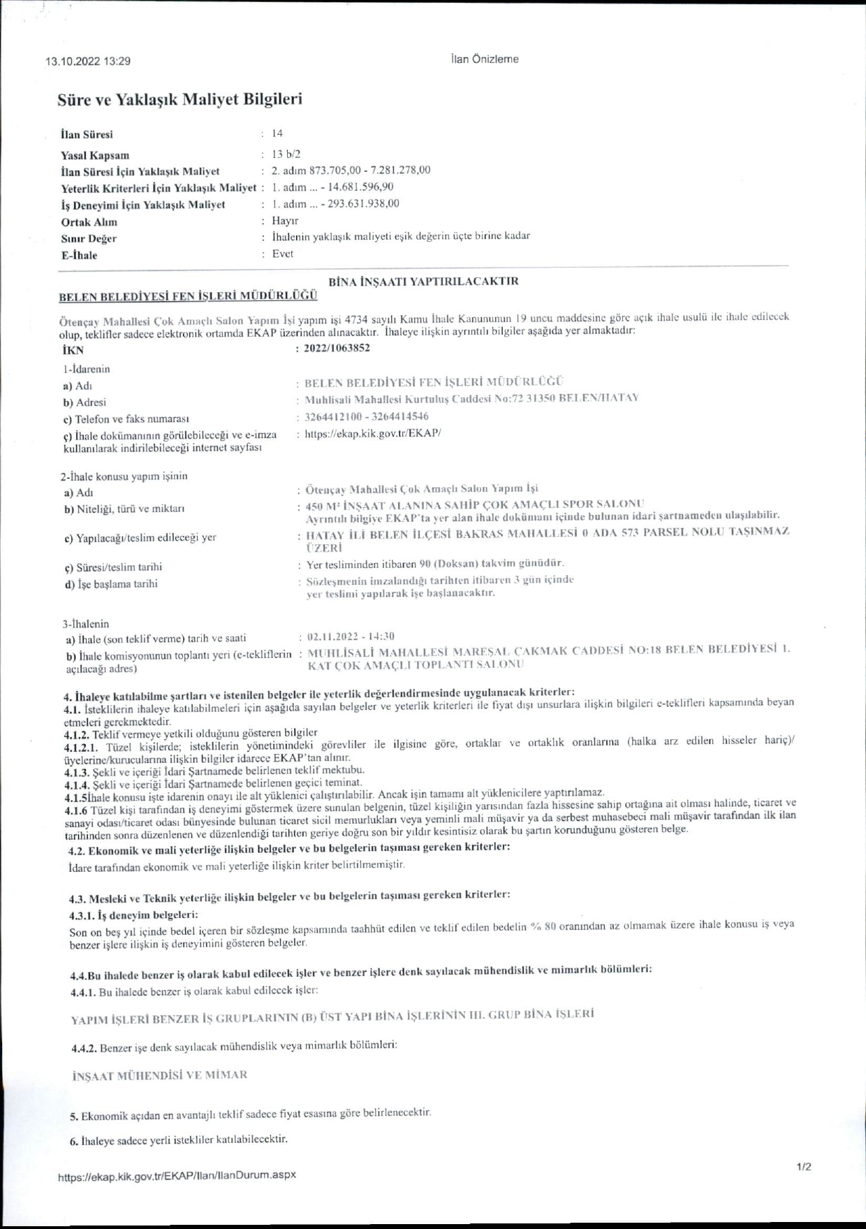 Ana Sayfa→Duyurular→Çok Amaçlı Toplantı Salonu Yapım İşi…