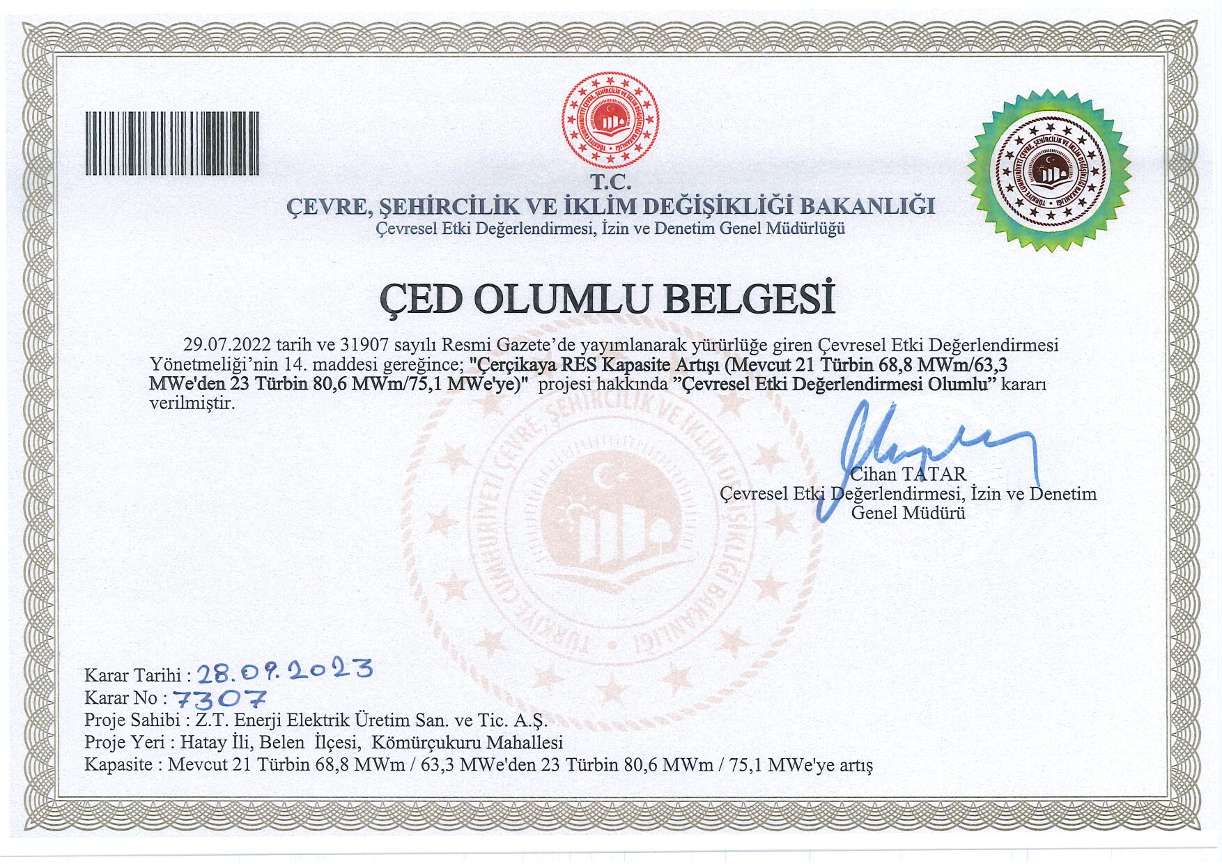 • ÇED Olumlu Kararının Duyurulması Hk.