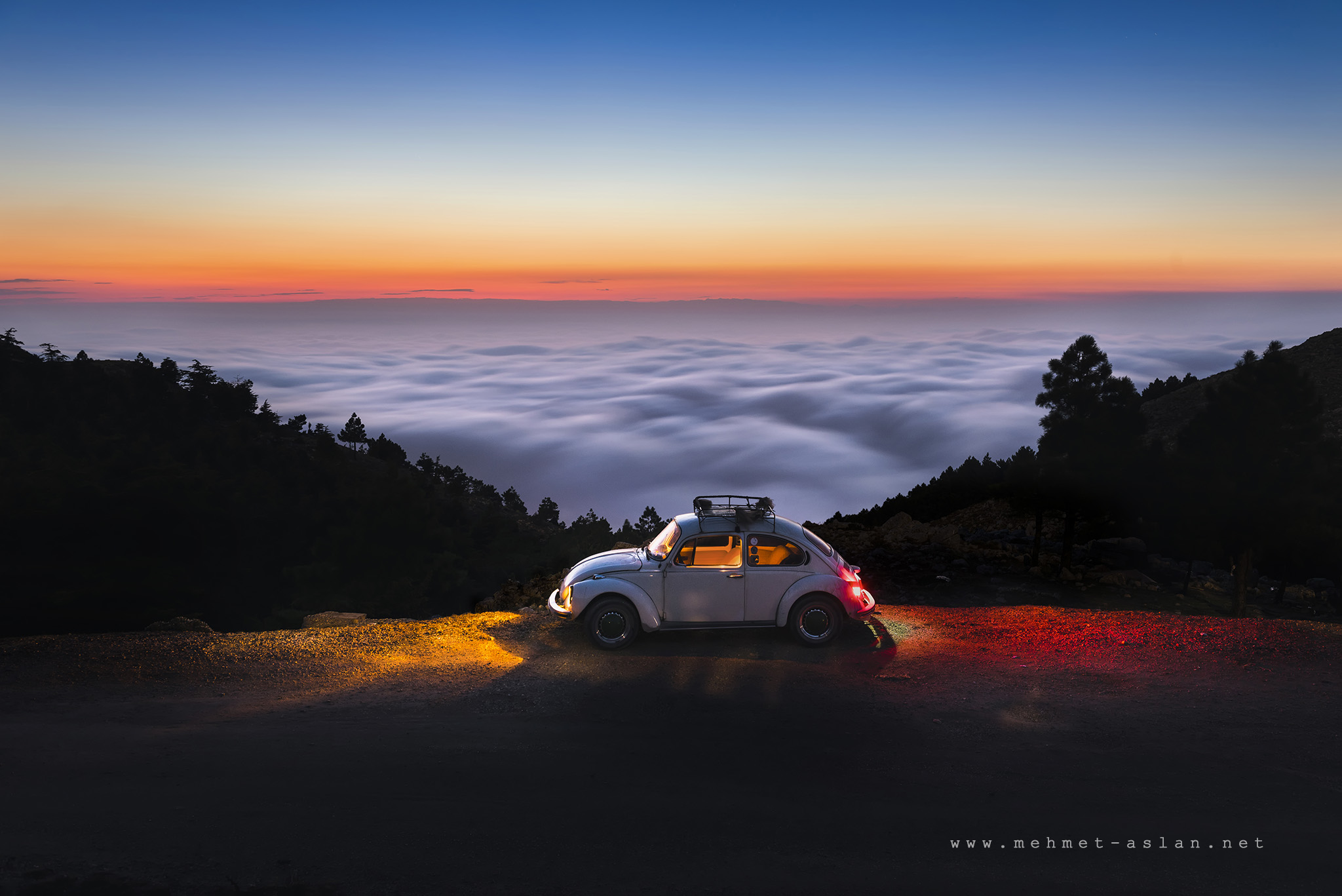 Kıcı mahallesi yakınlarındaki bir yamaçta çekilen ve klasik bir aracın farlarının yere vurmasıyla oluşan ışıkla, gökyüzünde oluşan aynı renkteki uyumunun yanı sıra yüksek rakım nedeniyle bulutların üzerinde çekilen fotoğraf, Hatay’ın en güzel seyir yerlerinden biri olma yolunda giderek ün kazanıyor.
