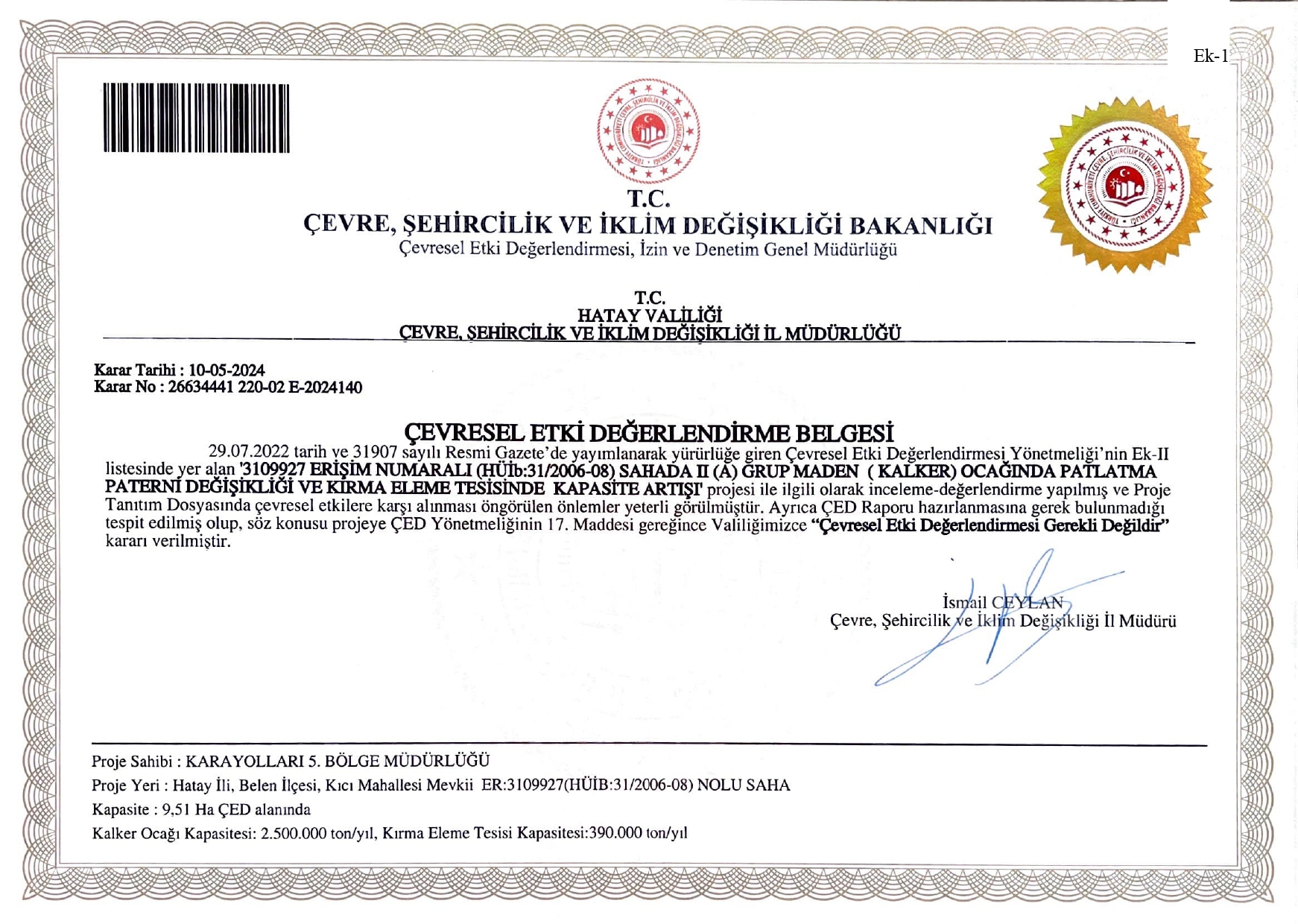 Ana Sayfa→Duyurular→ÇED Gerekli Değildir Karar Duyurusu