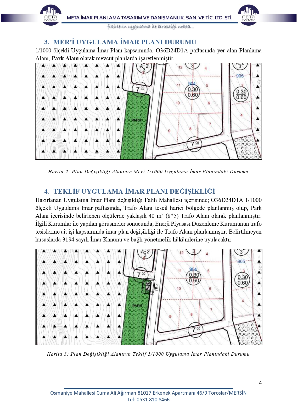Skip to contentFatih Mahallesinde bulunan 904 ada 15 numaralı parselin batısında yer alan terkli alanda Trafo Alanı eklenmesi amaçlı hazırlanan 1/1000 ölçekli Uygulama İmar Planı Değişikliği